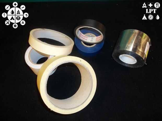 Con cinta y en particular cinta probablemente merecerían un Instructable entero o la competencia debido a sus infinitas aplicaciones en cualquier escenario. De reparaciones a la vivienda, a la ropa de los cordeles para primeros auxilios, agua transporte al fuego haciendo allí es apenas cualquier tarea en una situación de supervivencia que no se puede lograr con la ayuda de alguna cinta. Cortar a la forma y rodar hasta cabe en cualquier kit de supervivencia de tamaño.