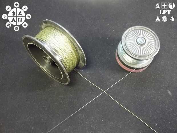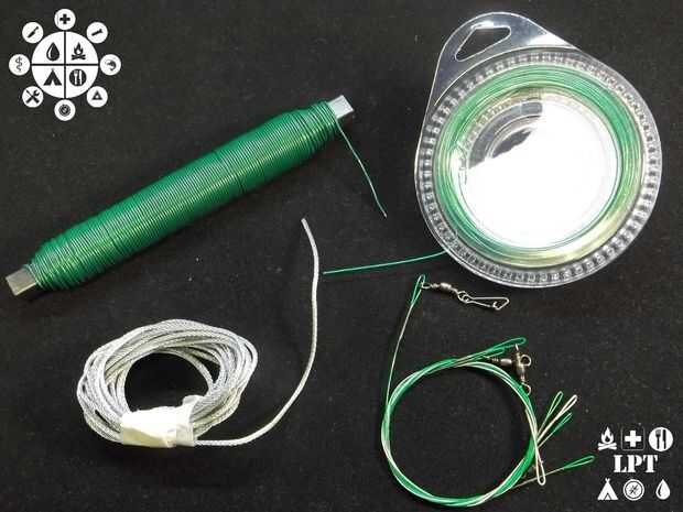 Líderes de línea y cable de pesca se puede utilizar para crear trampas para pequeñas presas como aves y ardillas. Trampas en general pueden ser improvisados con cuerda o alambre para agregar algún alambre de calibre pequeño no ocupa demasiado espacio, pero podrás crear varias trampas.