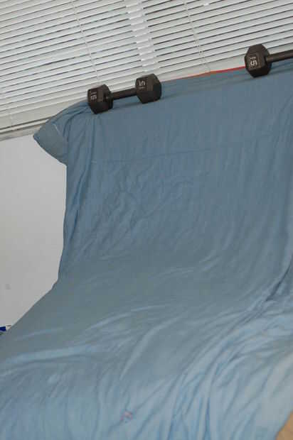 Dos telones de fondo que funcionan bien son cartulina y sábanas o edredones. Un pedazo de cartulina blanca, con la espalda sostenida por algo (yo uso pesos) hace un fondo de aspecto grande, profesional. Si el objeto es demasiado grande para una o dos, tableros de cartel, o blanco simplemente no funciona (y no tienes otros colores) puede hacer lo mismo con tachuelas o ponderación edredón, una hoja o cama.