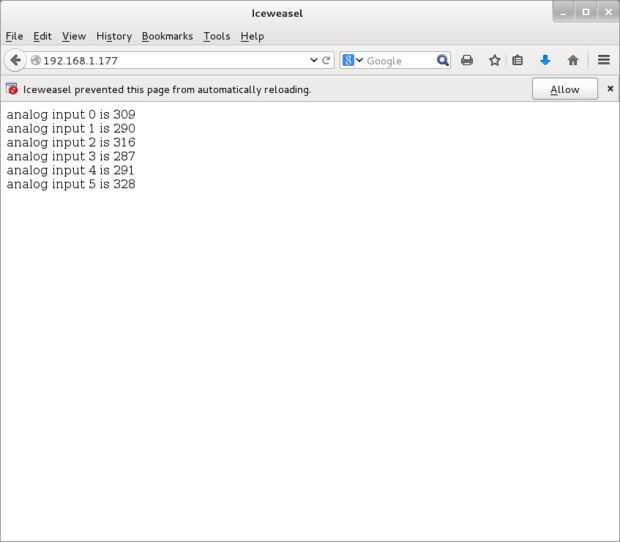 Normalmente tu no instalar aplicaciones web en el Arduino, pero usted puede usar html en el web server del bosquejo. Tomó el bosquejo de servidor web y añadido un pequeño escaparate para permitir que sea un poco mejor looking. Se adjunta es el código que usé. Incluso puede Agregar gráficos si enlazas a otro sitio en la web.