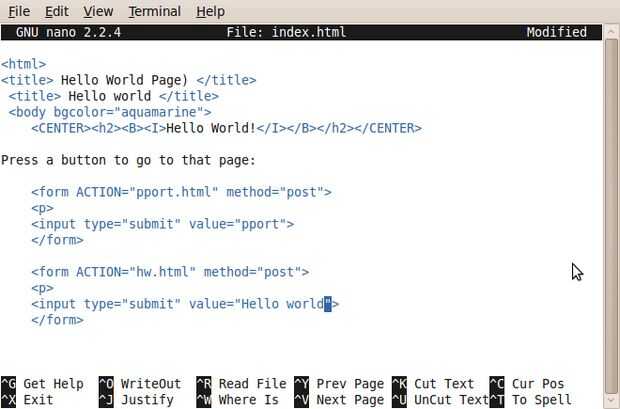 Tienes que cambiar el nombre de archivo html original a hw.html para poder utilizar más adelante.