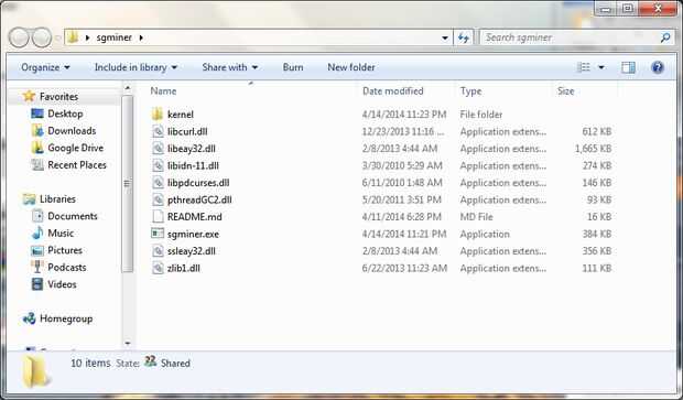 Dentro de la carpeta que usted encontrará varios archivos necesarios para el programa, aquí configurará su piscina así como afinar tu tarjeta de video para fines de explotación minera. Sin cualquier configuración iniciar el archivo sgminer.exe le presentará una ventana de comandos pide información de la piscina y el usuario. Porque este proceso es engorroso y tedioso hacemos un archivo por lotes sencillo para alimentar la información requerida para el minero y proporcionarle una forma sencilla de afinar la configuración rápidamente.