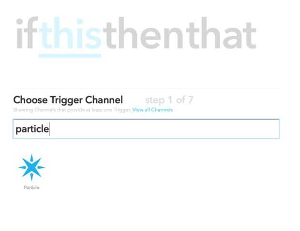 Después de eso, haga clic en la barra de búsqueda y búsqueda "Partícula" al hacer clic en él, te pedirá conectar la partícula a su cuenta IFTTT. Esto simplemente significa que tienes que firmar IFTTT puede ver sus datos variables.
