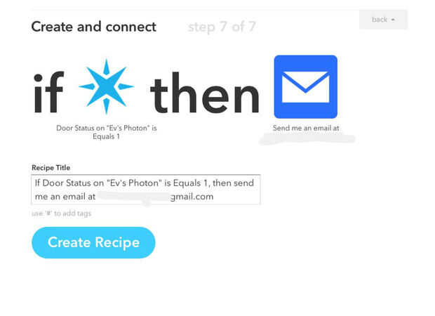 Voilà! han creado un conector de Internet de las cosas de IFTTT. Puede afectar casi cualquier cosa que Internet relacionadas con variables en su tabla. Incluso puede enviar un tweet!