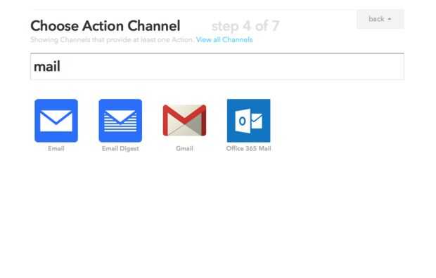 Ahora, si desea que la acción le enviará un correo electrónico, buscar "correo electrónico" en el cuadro.