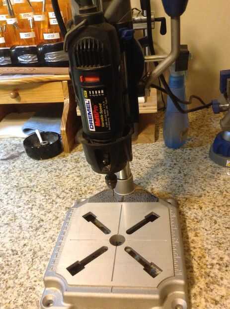 Otro uso potencial de una herramienta giratoria es con el Dremel taladro. ($50ish) Usted puede perforar que ha marcado con una rueda Overstitch en el taladro Dremel. (No recomiendo un taladro de tamaño completo, a menos que realmente confiamos y puede conseguir un pedacito de taladro muy pequeño en él. Puede instalar casi cualquier herramienta rotatoria de tamaño completo en el taladro, no tiene que ser de marca Dremel para trabajar.