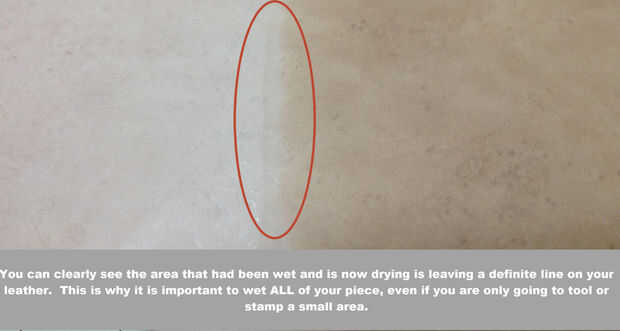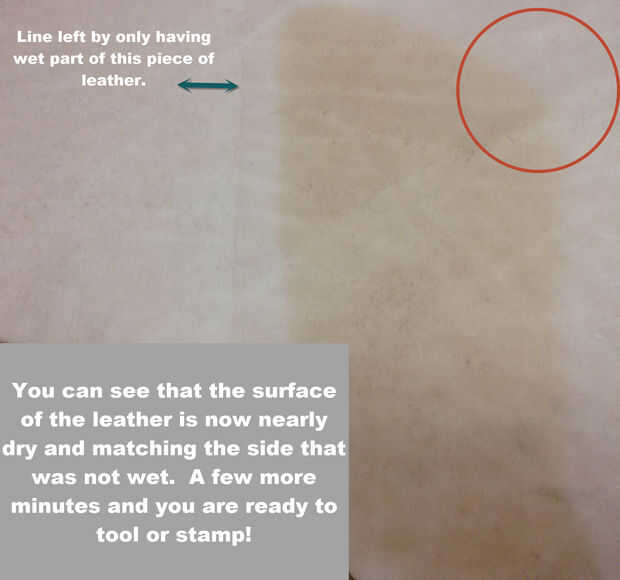 Una nota muy importante es que siempre han mojado su cuero, independientemente del método utilice) quiere mojar uniformemente en toda la pieza. Si tienes varios equipos, incluso si no vas a la herramienta o las otras piezas de la estampilla, desea mojar las piezas al mismo tiempo que mojar la pieza que vas a herramienta o sello.