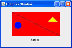 Este código será dibujar una línea, algunas formas, una cadena y el fondo de color, tratar de adivinar lo que se verá como antes de ejecutar en su computadora:
