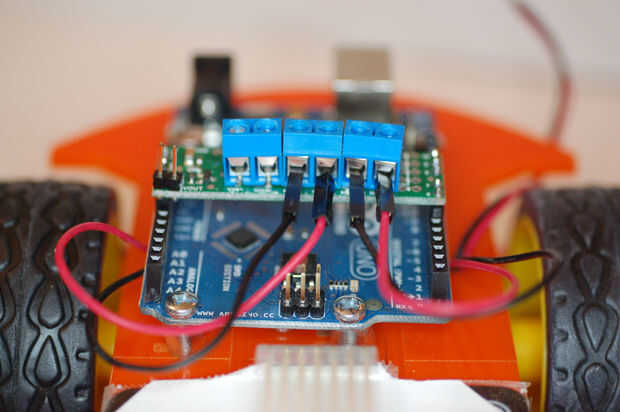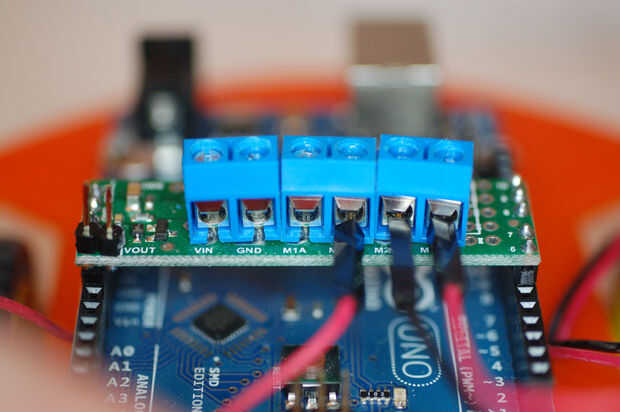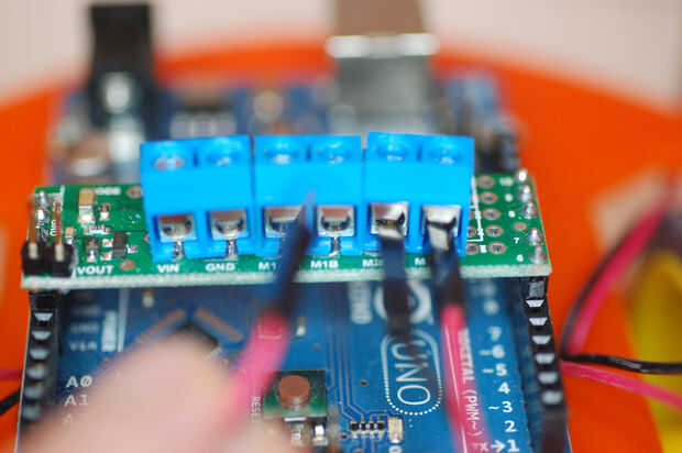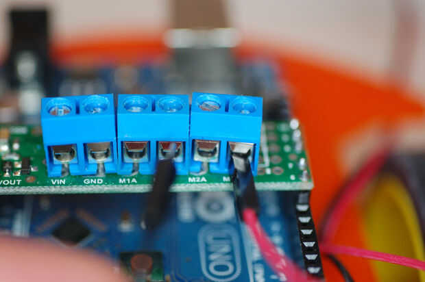 2. Conecte el cable rojo del motor izquierdo en el M1B.