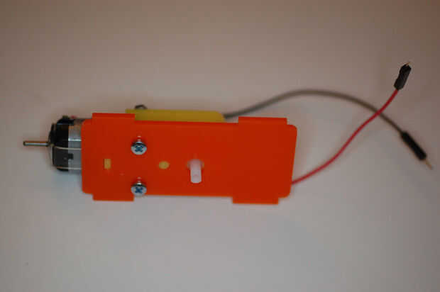 Con dos pernos 25 mm M3, instale motor a la bancada con un destornillador. Utilice una tuerca para sujetar perno en su lugar.