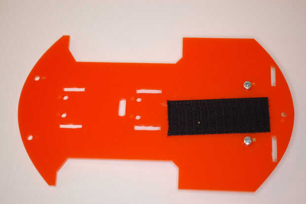 Usando pernos de 10mm M3, coloque la rueda al lado de la cubierta inferior sin velcro (los tornillos deben sobresalir en el lado opuesto al velcro).