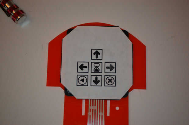 Ponga la pegatina en el teclado, con flecha de 5, reloj de arena de 8 y abajo en 0.