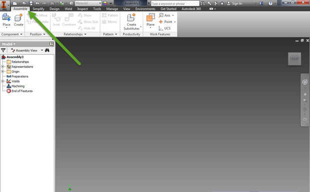 Seleccione la ficha "Ensamblar" para que pueda colocar y restringir los componentes en el conjunto de la estructura soldada.