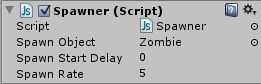 Con los reproductores seleccionados arrastrar y colocar la casa prefabricada de Zombie en la propiedad del objeto Spawn del guión también.