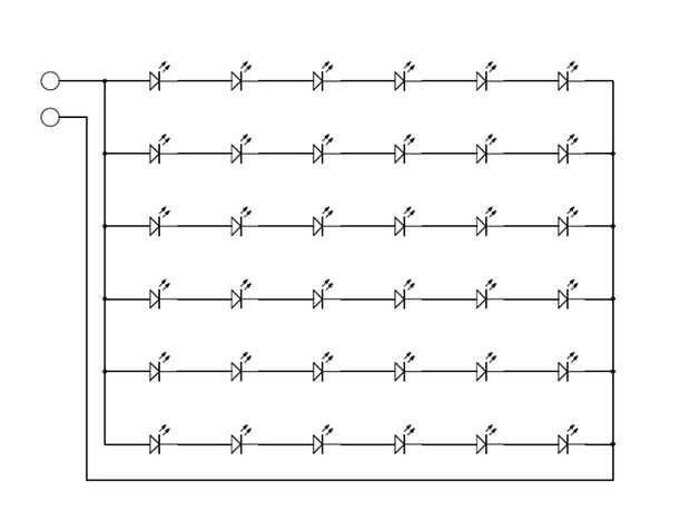 Para cada segmento que los LEDs están conectados en serie, lo que significa que los voltajes de funcionamiento se agregan para arriba, dando la tensión más alta es necesitada. Todos los segmentos están conectados en paralelo, para que todos obtienen la misma cantidad de voltaje todo el camino abajo de la tira, pero el consumo de corriente suma dependiendo de la longitud de la tira. Para obtener más información sobre cómo alimentar la tira, vaya al paso 3.