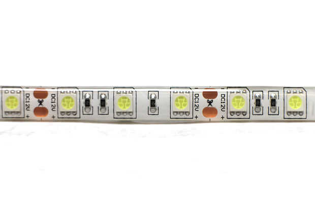 Análoga las tiras vienen en mono (un color) o RGB (espectro de color completo). Se venden en carretes y se puede cortar en pequeños segmentos. Los segmentos están marcados por las almohadillas de contacto metal y a veces tienen una pantalla del icono de tijeras impresa en ellos (los amo)!. Las tiras que se muestran aquí están segmentadas en 5cm y longitudes de 10cm, cada segmento contiene 3 LEDs. Tiras de usan generalmente 30, 32, 60 y 120 LEDs por metro, que va a cambiar precio y consumo de energía.