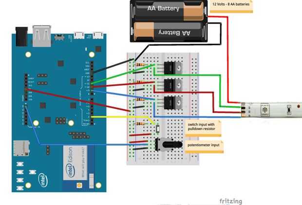 RGB analógica - uso 3 potenciómetros para controlar el brillo de cada canal de color. Esto hace que un mezclador de colores simple, permitiéndole controlar qué color la tira es sintonizar los canales.