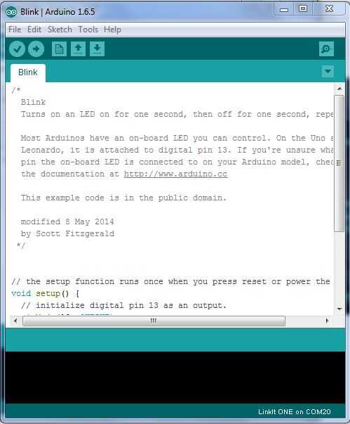 Ahora es el momento para subir el primer programa de LinkIt uno y qué mejor que los ejemplos de blink de Arduino. El programa de blink es el ejemplo "Hello World" de microcontroladores, todo ello no es hacer una Junta de parpadeo de LED en un cierto intervalo de tiempo.