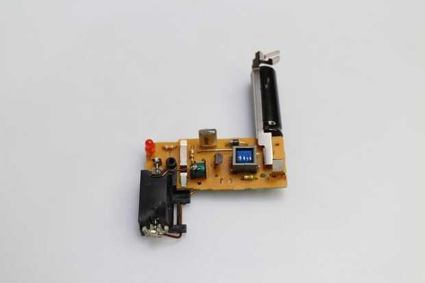 El circuito de flash de cámara tiene algunas piezas claves. La primera mitad del circuito consiste en un circuito oscilante rápidamente a través del transformador más grande que carga el condensador cuando el interruptor está en. Esto rápidamente se construye hasta acerca de 300V en el condensador. Cuando se cierra el interruptor de gatillo, este cargo pasa por un transformador secundario que aumenta aún más la tensión que luego es lo suficientemente alta como para activar el tubo de flash. Estamos ignorando la segunda mitad del circuito que descarga el flash, por lo que puede desea quitar completamente (el circuito todavía funcionará bien). Sólo nos interesa la fuente de 300V más modesta desde el condensador. (Vea este video si quieres saber exactamente lo que está sucediendo en el circuito)