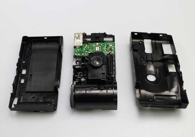 Mayoría de las cámaras desechable simplemente encajar juntos. Usando su uña o un destornillador pequeño para desalojar cuidadosamente aparte las lengüetas a lo largo de la costura de la cáscara de la cámara. Estas son generalmente rápido débil. Una vez que has quitado la parte de atrás, pop la portada para revelar el circuito de flash. Extraiga la batería y el PCB debe caer justo cuando usted voltee. Comprobar con un polímetro en los dos pasadores del condensador a ver si hay cualquier carga latente, pero no ser cuidado a corto los pines como chispas si el condensador se ha cargado recientemente.