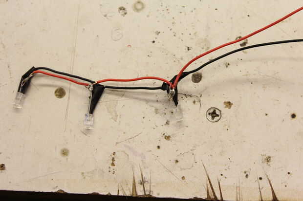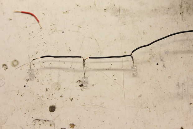 Repita este proceso dos veces para que tengas tres conjuntos de LEDs con mucho rojos y negros "colas".