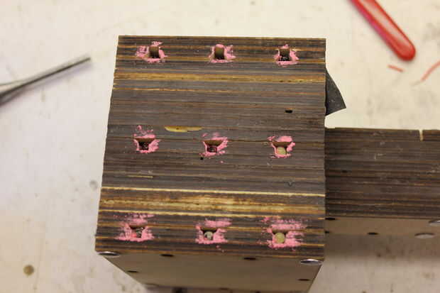 Para asegurarse de que los agujeros perforados en la línea poliuretano para arriba con los LEDs te recomiendo tomar un trozo de tiza y frotar alrededor de las aberturas para los LEDs (ver imagen 1).