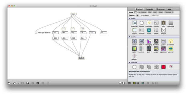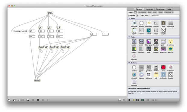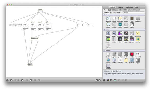 El objeto de "canalización" es un tipo de retraso que mantiene un seguimiento de más de un mensaje en un momento. Al enviar la nota y la velocidad de un mensaje MIDI a un objeto de canalización, podemos retrasar la nota por una especifica el intervalo de tiempo. Para saber el objeto de canalización cuántos mensajes que queremos a la vez, utilizamos argumentos. Tipo de los marcadores de posición 0 y 0 después de la pipa de la palabra para que sepa el tubo para almacenar dos mensajes, escriba la duración de la demora (utilicé 300ms). El objeto de canalización crea dos entradas y dos salidas, una para cada mensaje que se almacenará. Cable hasta la segunda nota del armonizador de intervalos a la entrada izquierda de la tubería y la velocidad de notein a la segunda entrada de mensaje en pipa.
