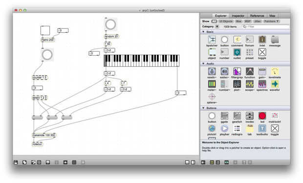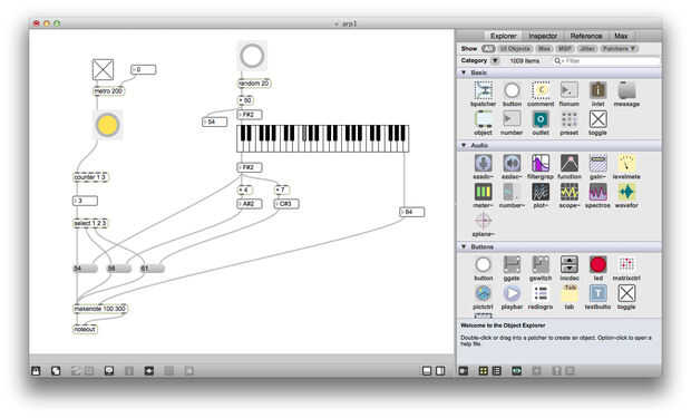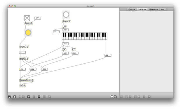 Usando este conocimiento, podemos volver atrás y hacer el "máximo primer su parche" aún mejor. Lo que se creó antes de que, al selecciona un nuevo conjunto de notas, las notas fueron enviadas a las entradas calientes de objetos número 3, que las parcelas ser enviado inmediatamente en el objeto makenote. Así que cada vez que una nueva serie de notas fue seleccionada, el parche había salida un acorde de tres Nota inmediatamente y entonces comenzó a arpeggiating.