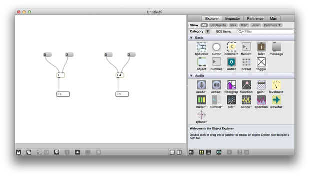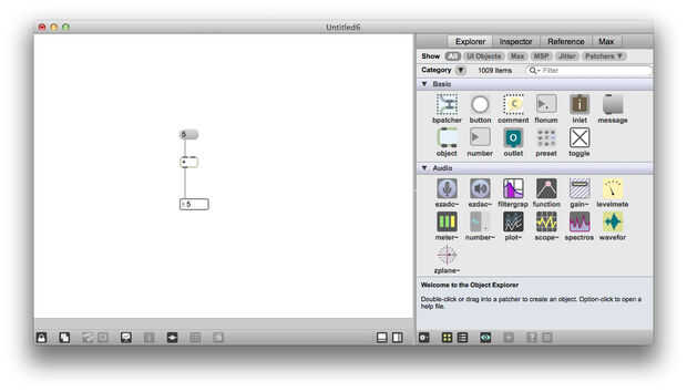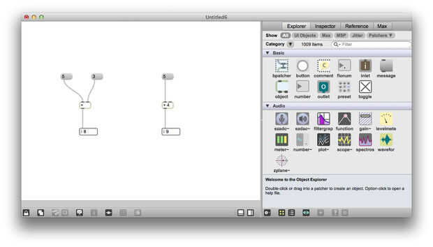 Ahora crear una + objeto con un argumento de 4, por defecto este objeto añadirá 4 a todo lo que entra en su entrada caliente. Verifique que esto es cierto mediante el envío de un mensaje "5" para el + objeto. Puede reemplazar este argumento mediante el envío de un número en la entrada de agua fría.