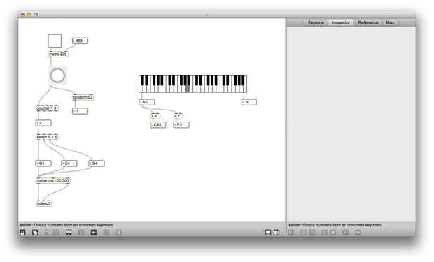 Copiar la parte de MIDI del parche dos veces (seleccionar las piezas que desee copiar y pulse alt u opción y arrastrar) y conectar los objetos número a los puntos de venta seleccionados. Cambie el valor de los objetos de número a la salida de tres notas distintas (configurar mía para crear un Acorde a importante de C4). Ahora bloquear el parche y probarlo, debe oír el parche del ciclo a través de cada nota.