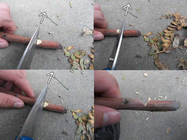 colocar el cuchillo en un ángulo leve y empuje mientras se desliza hacia adelante un poco para penetrar más allá, entonces ángulo otra forma y hacer lo mismo, repetir según sea necesario para lograr la profundidad deseada.