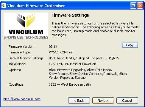 En primer lugar, visite el sitio web de Vinculum y descargar el último archivo de Reflash(FTD) . También obtener la VPROG volver a flash Utility (no utilizado en este instructable, pero será útil si tiene problemas) y el Firmware Personalizador de la sección de aplicaciones y utilidades más abajo en la página.