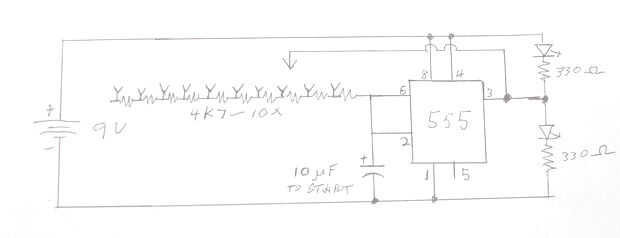 El pequeño punto en el 555 marcas del pin uno. Debe estar en la esquina superior derecha.