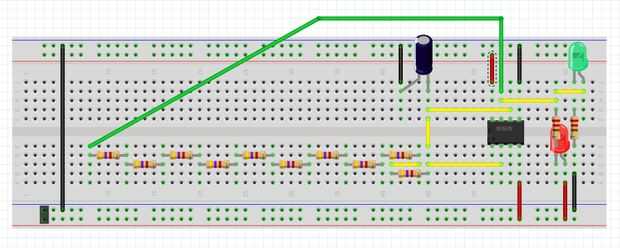 El cable verde debe ser lo suficientemente largos para alcanzar la resistencia última.