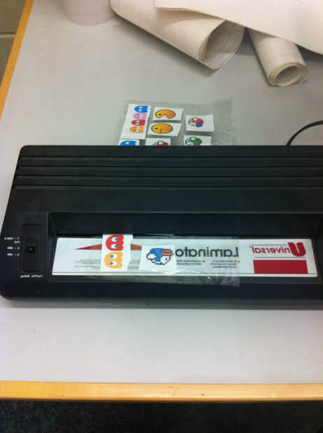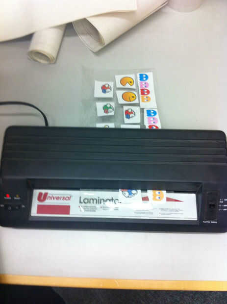 Paso que 3 necesita para laminar los personajes. Encienda al laminater y lentamente colocar el papel de laminación a través laminater hasta que totalmente laminado.