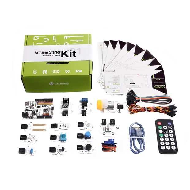 Hola chicos, el Arduino Starter Kit suministrado por el ElecFreaks (centrado en hardware abierto 4 años) es un gran material para que los usuarios en el aprendizaje paso a paso muy bien. Para este juego, no hay necesidad de soldar, conecte y uso, la construcción del circuito de trabajo se puede hacer en un minuto. Tiene 9 cursos en total, el contenido incluye LED, sensor infrarrojo, servo y mando a distancia IR. precio total de 16 módulos de 75usd, este kit de salvar a 59.98usd.