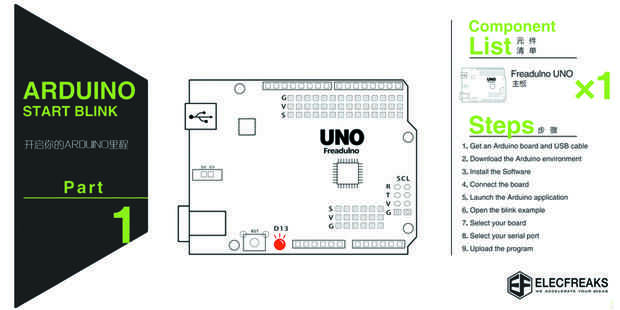 <p>/*<br> PART1 ARDUINO START Blink Turns on LED for one second, then off for one second, repeatedly. Get the code from: Arduino IDE->File->Example->Basics->Blink Pin 13 has an LED connected on most Arduino boards. */ int led = 13; // the setup routine runs once when you press reset: void setup() { // initialize the digital pin as an output. pinMode(led, OUTPUT); } // the loop routine runs over and over again forever: void loop() { digitalWrite(led, HIGH); // turn the LED on (HIGH is the voltage level) delay(1000); // wait for a second digitalWrite(led, LOW); // turn the LED off by making the voltage LOW delay(1000); // wait for a second }</p>