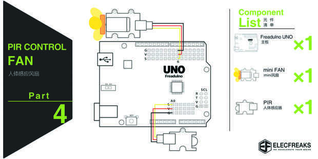 /* PART4 PIR Sensor CONTROL Motor fan If someone passing from the front, the fan will turn */ int pir = A0; // The A0 pin,read PIR int motor = 6; // The 6 pin,driving the motor void setup() { pinMode(pir,INPUT);// initialize the PIR pin as an input. pinMode(motor,OUTPUT);// initialize the motor pin as an output. } void loop() { if(digitalRead(pir)==HIGH){ digitalWrite(motor,HIGH); delay(5000);// wait for 5000 microsecond digitalWrite(motor,LOW); //turn off the motor } }