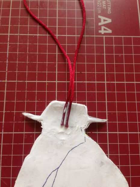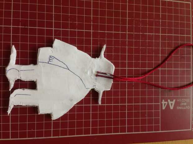 Doblar un trozo de cable en dos y péguelo en la parte posterior del robot. En medio de la cabeza