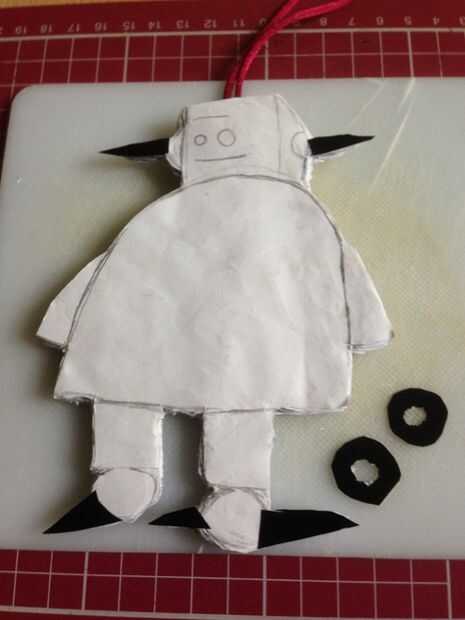Cortar dos rondas para las ruedas y algunos pedazos para los lados. He utilizado papeles de la etiqueta engomada. Es fácil de quitar la funda y pegar justo encima.