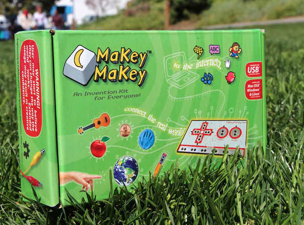 ¿Qué es Makey Makey? Convertir el mundo entero en un teclado. Es un simple Kit de invención para principiantes o expertos haciendo arte, ingeniería y todo en el medio. ¿Cómo funciona? Alligator Clip dos objetos Makey Makey. Por ejemplo, usted y un plátano (o un cubo de hielo o un gatito). Cuando tocas la banana, el equipo piensa apenas que se está presionando una tecla del teclado, por lo que puede escribir una carta, saltar en un juego de video, tomar una foto o escuchar música. ¿Quién es Makey Makey para? Niños, artistas, educadores, ingenieros, inventores, creadores. Realmente es para todos. ¿Qué materiales trabajan con Makey Makey? Salsa de tomate, lápiz grafito, dedo pintura, frutas, plantas, monedas, su abuela, cubiertos, cualquier cosa que es mojado, mascotas, aluminio, lluvia y cientos más. Realmente cualquier material que puede llevar a cabo al menos un poquito de electricidad. ¿Qué puedo crear? Hacer un piano de plátano, jugar a Mario en un gamepad de juego masa, tomar un selfie de su gato cada vez bebe agua. ¿Cómo? En primer lugar, se carga un programa de computadora o cualquier página web. Digamos que usted carga un piano. Luego, en vez de usar los botones de teclado de computadora para jugar el piano, usted puede enganchar el Makey Makey para algo divertido, como plátanos y las bananas se convierten en las teclas de piano. Cientos de ejemplos se puede encontrar en MakeyMakey.com