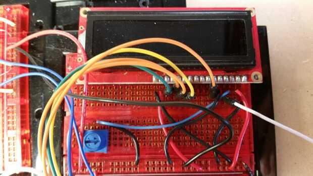 El circuito utilizado para el control de la pantalla era el circuito exacto presentado Kit Guide libro del Sparkfun Inventor para el control y la pantalla LCD. Esta guía puede encontrarse aquí