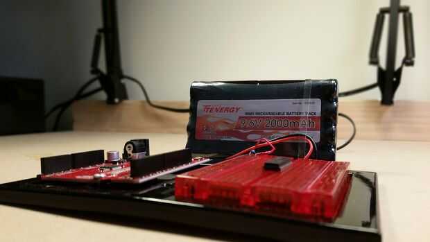 Luego conecte la batería para sus motores a los rieles de la placa positivos y negativos.