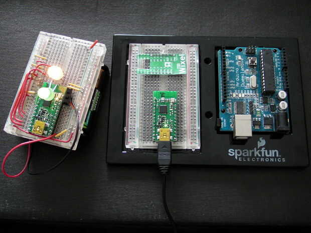 El otro defecto es que cuando en el protoboard no puede ver las conexiones, están en la parte inferior! Podrían haber usado pernos más largos, para limpiar el conector USB, en el lado opuesto, así breadboardable con los pines hacia arriba. ¿Versión 2 Mr chip? Podría comprar la versión sin montar y conseguir algunos más pins de cabecera.