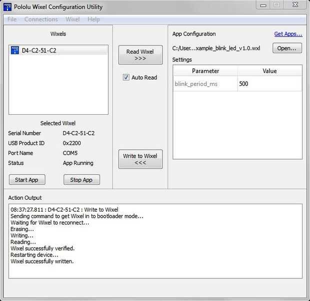 Ahora debe swap Wixel segundo y establecer con la aplicación de LED intermitente. Esto es para que podamos usar cualquiera de ellas en los siguientes pasos sin tener que inicializarlo.