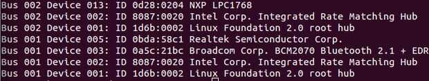 El dispositivo sería nombrado Mbed para CMSIS-DAP si usted abre su Panel de Control = > Hardware y sonido = > dispositivos y las impresoras en PC con Windows o solo en lsusb en Linux (es nombre de NXP LPC1768 en Ubuntu). Si los pasos anteriores van bien entonces ha conectado su K64F con éxito.
