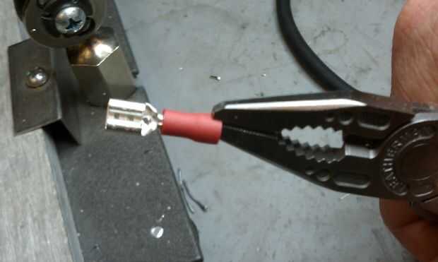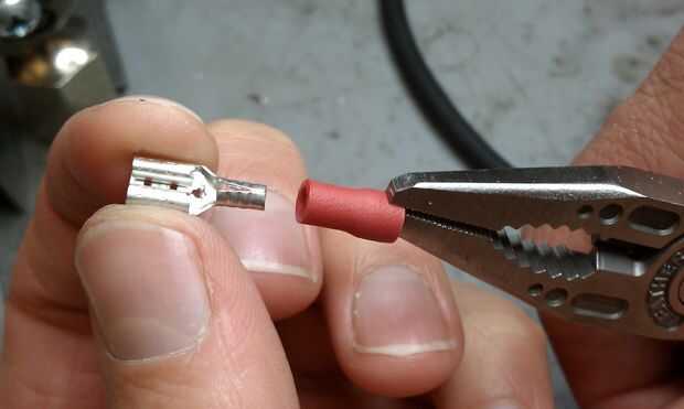 4. la plancha se está calentando, inserte 1 de los cables de núcleo sólido de 1" en una desconexión masculina.
