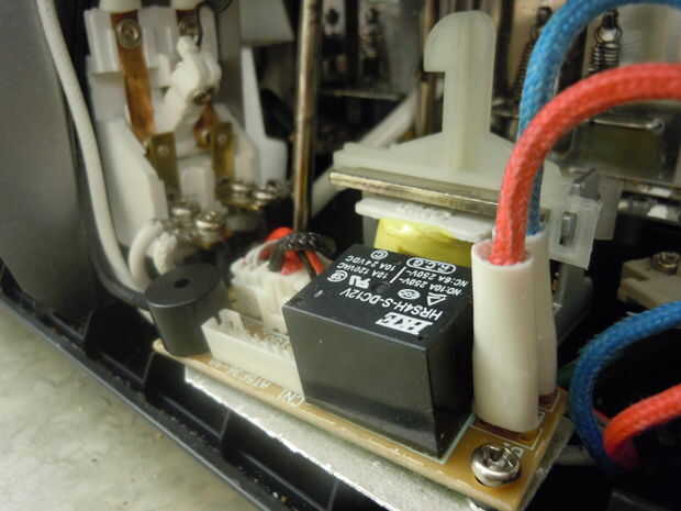 4. Inserte el rojo y azul mujer desconecta en la placa, el cable rojo debe estar más cercano a la parte delantera de la tostadora.