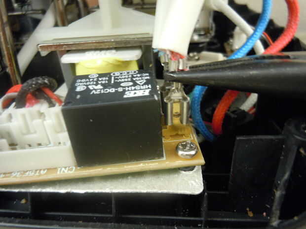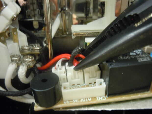 3. Oriente el conector de 8 pines y los cables rojos y azules por lo que puede colocar sin tensión. El tiempo 8 pines deben hacer frente hacia la parte delantera de la tostadora.