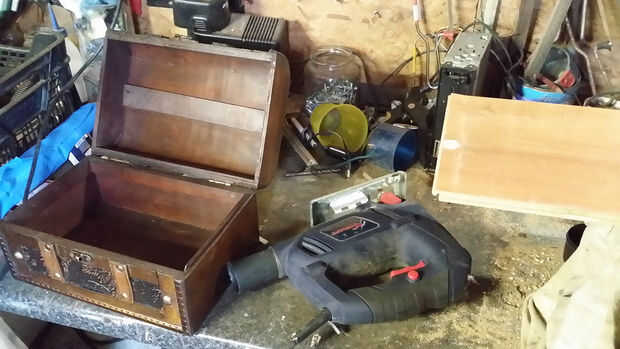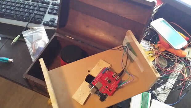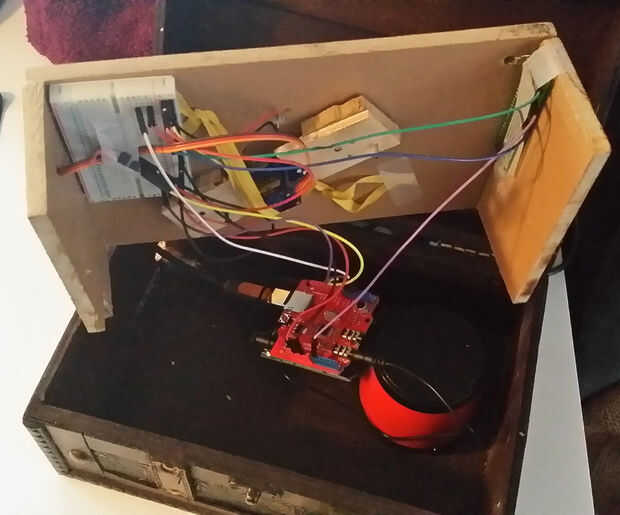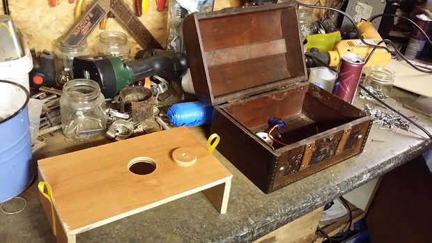 Para dentro de la caja he hecho una construcción de madera interior para ocultar el Arduino y el resto de componentes.